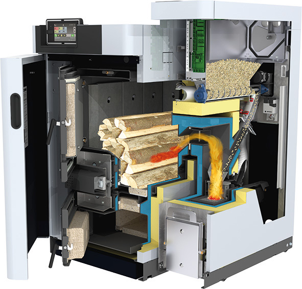 Für jene, die Scheitholz und Pellets verfeuern sind Kombikessel die richtige Wahl. So nutzt man die Vorteile eines Stückgutkessels und eines vollautomatischen Heizsystems. Um für die Zukunft flexibel zu sein gibt es Stückgutkessel mit Pelletsflansch, so kann die Pelletseinheit jederzeit nachgerüstet werden.
